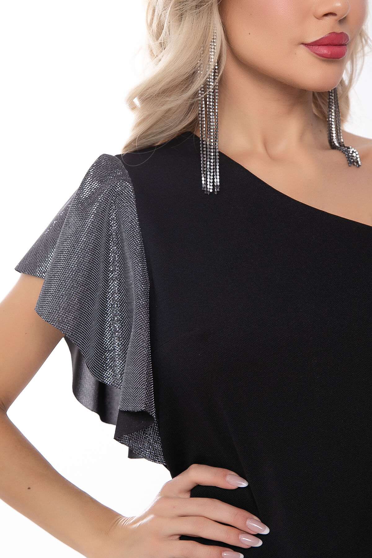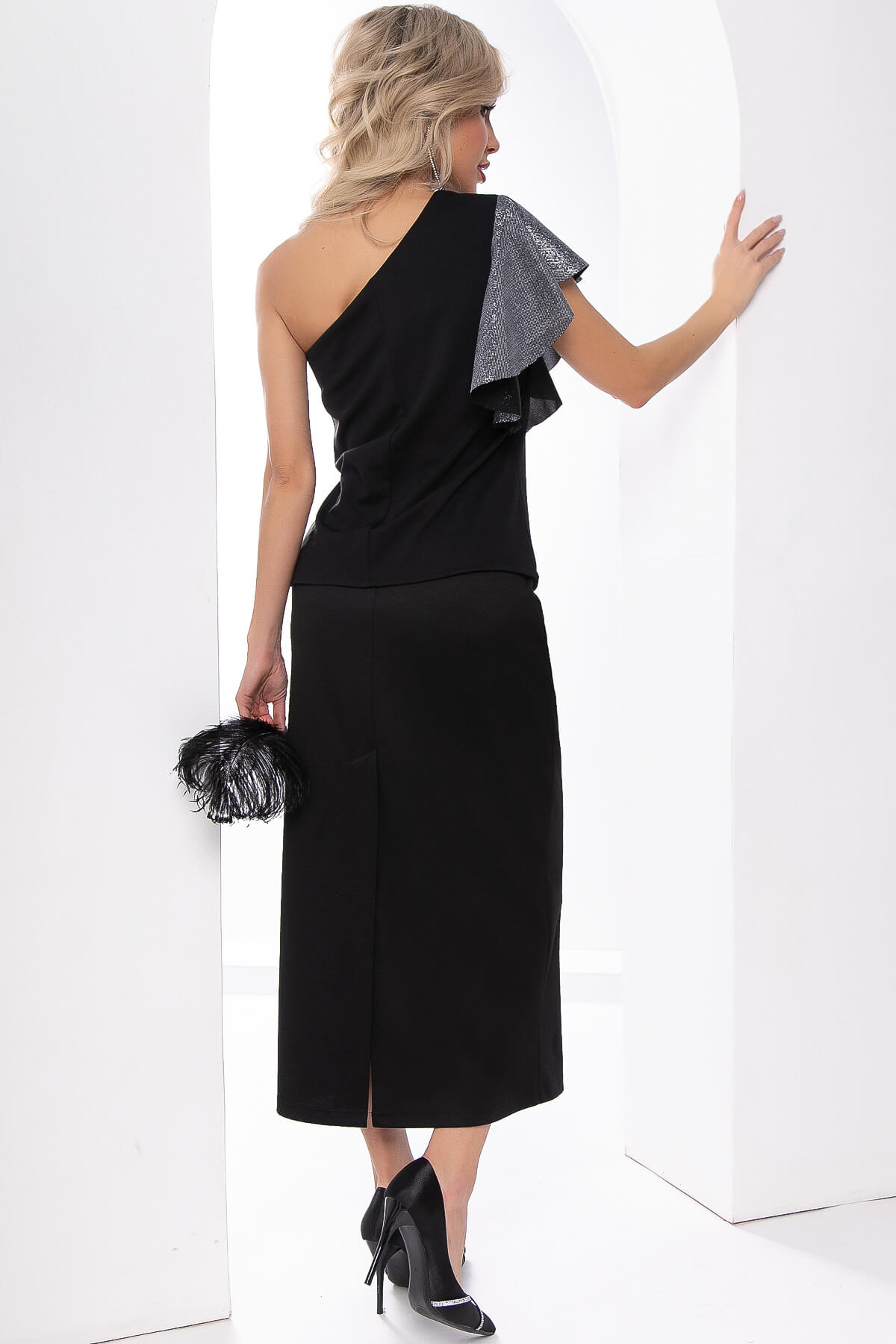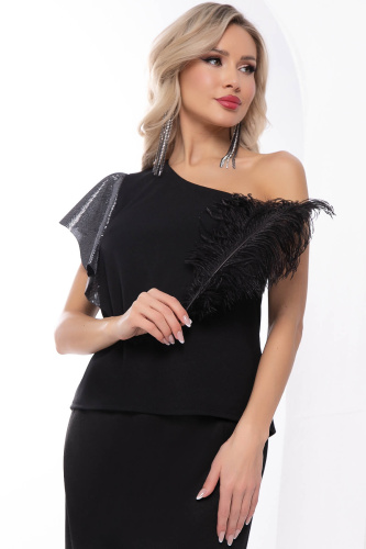 Прекрасный выбор! Черный топ на одно плечо с рукавом-воланом - стильный и элегантный элемент гардероба. Создайте невероятные образы, сочетая его с разнообразными брюками, юбками или джинсами.