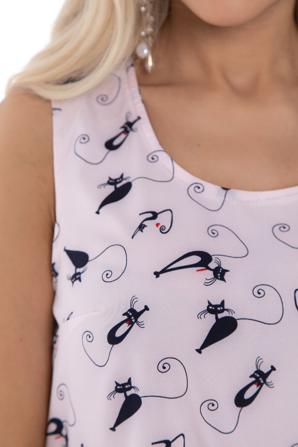 Универсальная блузка акцентированная очаровательным принтом с котами, эффектно дополнит ваш повседневный образ. Можно носить заправленной или навыпуск с брюками и юбками.
