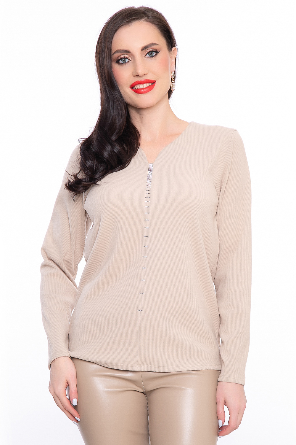 - Красивый V-образный вырез горловины;