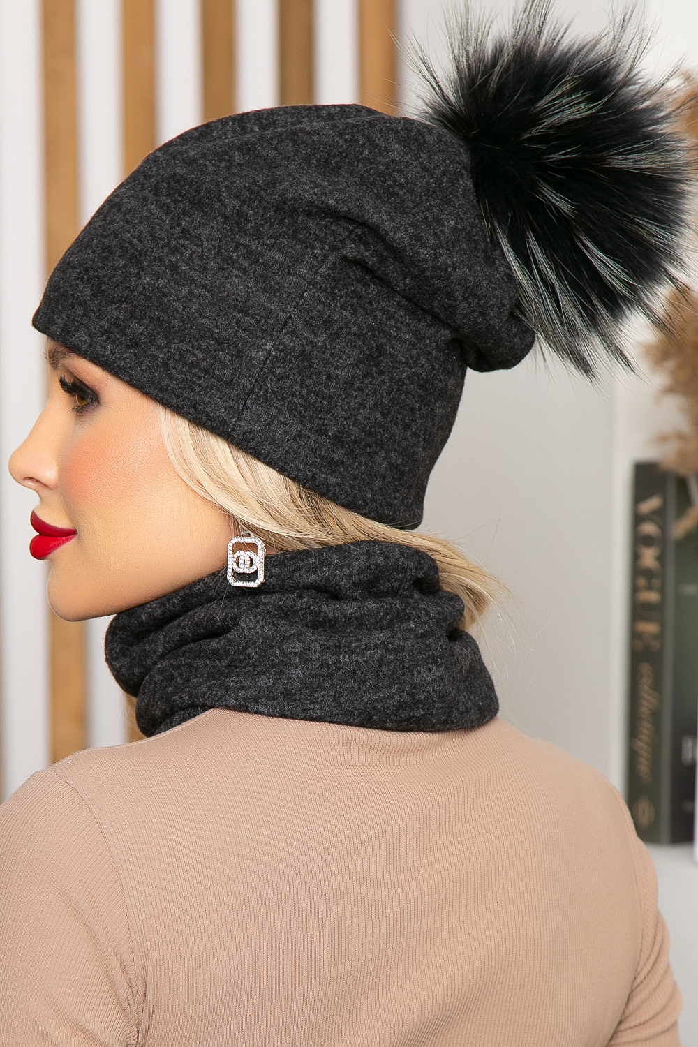 Мягкий и тёплый комплект, состоящий из двухслойной шапки и снуда. Снуд позволит защитить шею от ветра. Благодаря универсальному цвету будет сочетаться практически с любым вариантом верхней одежды. Шапка скроена из шести клиньев, прекрасно прилегает к голове, не сдавливая её.