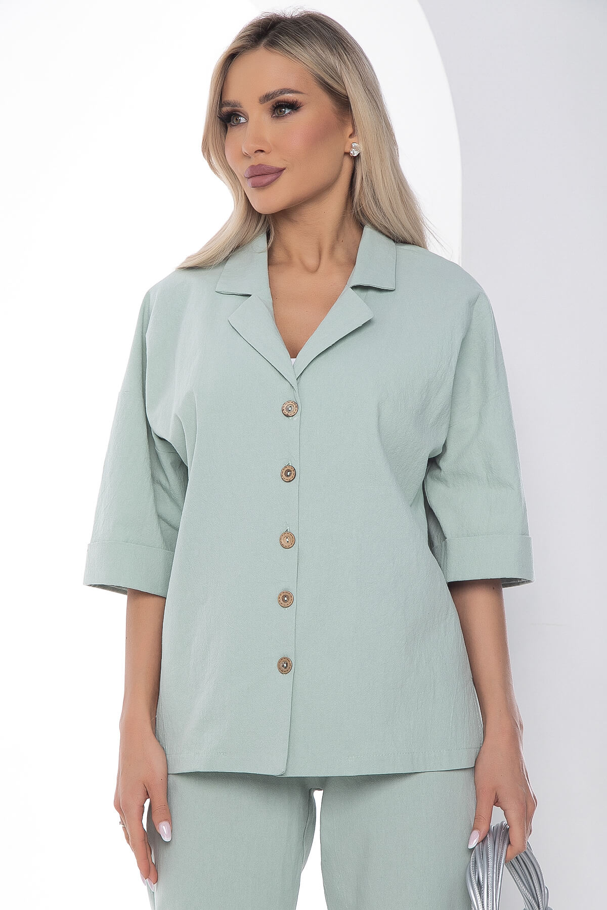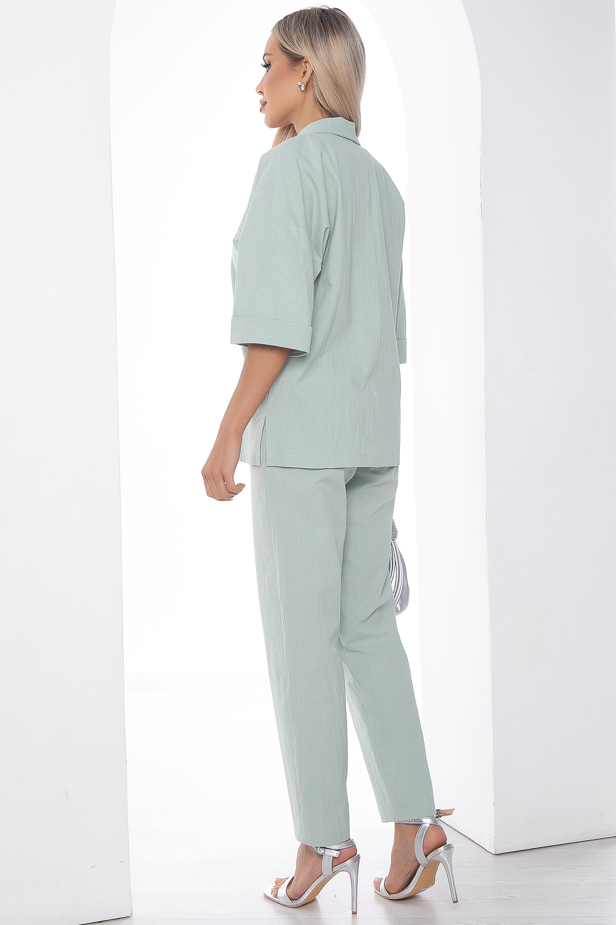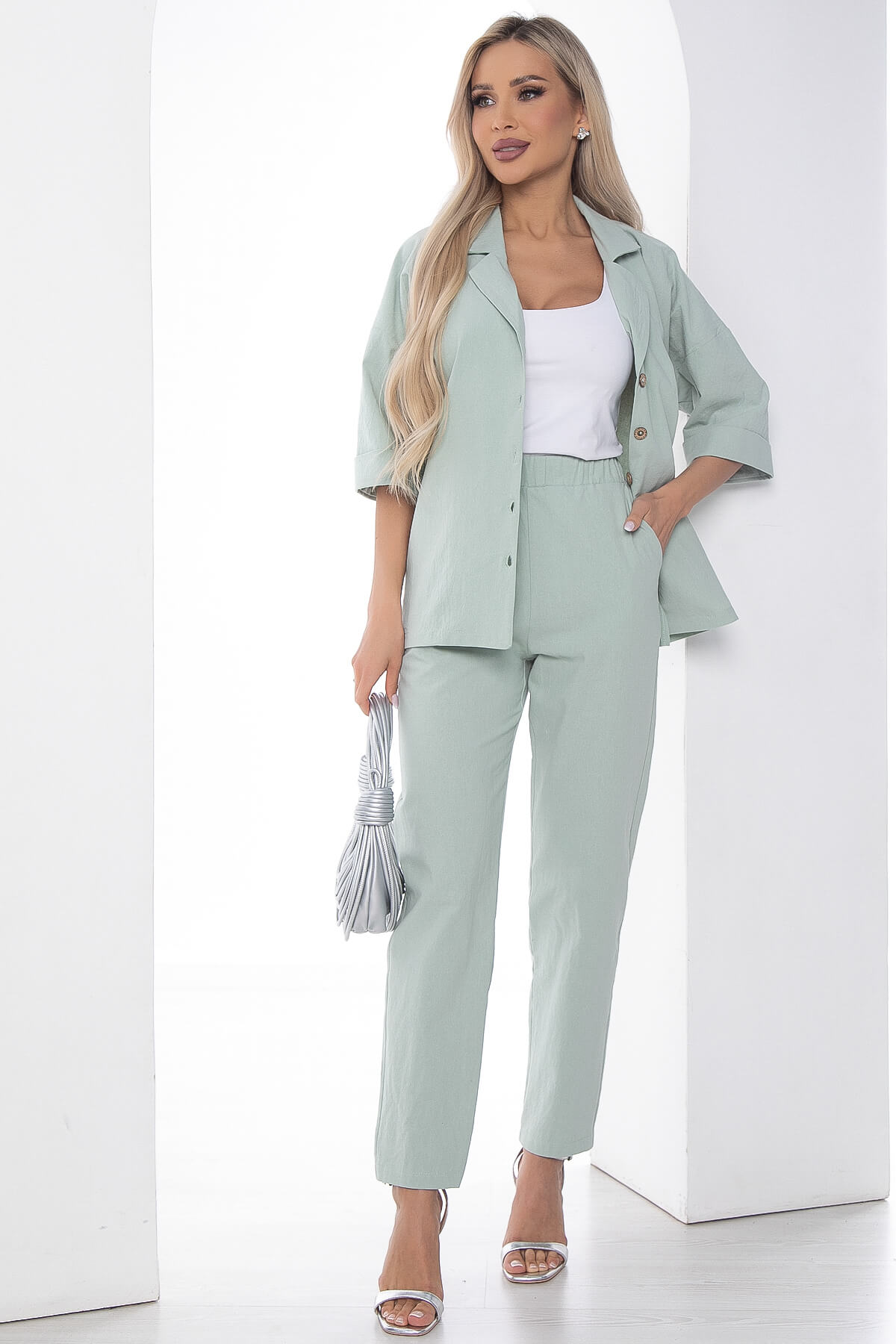 Летний брючный костюм из легкой ткани – один из лучших вариантов в жаркую погоду! В нём вы будете себя чувствовать уверенно и комфортно. Можно носить совместно так и раздельно. Этот брючный костюм подойдет как для дома, так и для выхода на пляж или вечернее мероприятие. Жакет свободного кроя на пуговицах, рукав 3/4 спущенный на манжете. Брюки полуприлегающего силуэта на резинке, есть карманы.