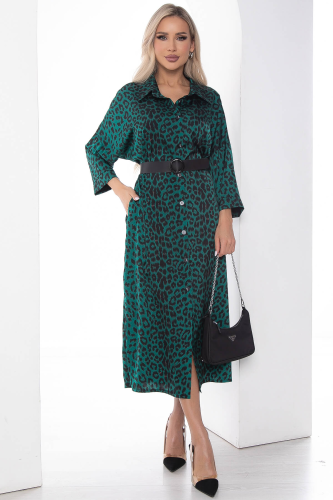 Леопардовый принт в одежде вновь на пике моды! Достаточно пестрый и яркий принт, он лучше всего смотрится в паре с нейтральными оттенками. Фавориты – бежевый и черный в однотонном исполнении. Платье-рубашка прямого кроя, рукав три четверти, со спущенным плечевым швом, по низу манжет. Ремень из искусственной кожи входит в комплект.