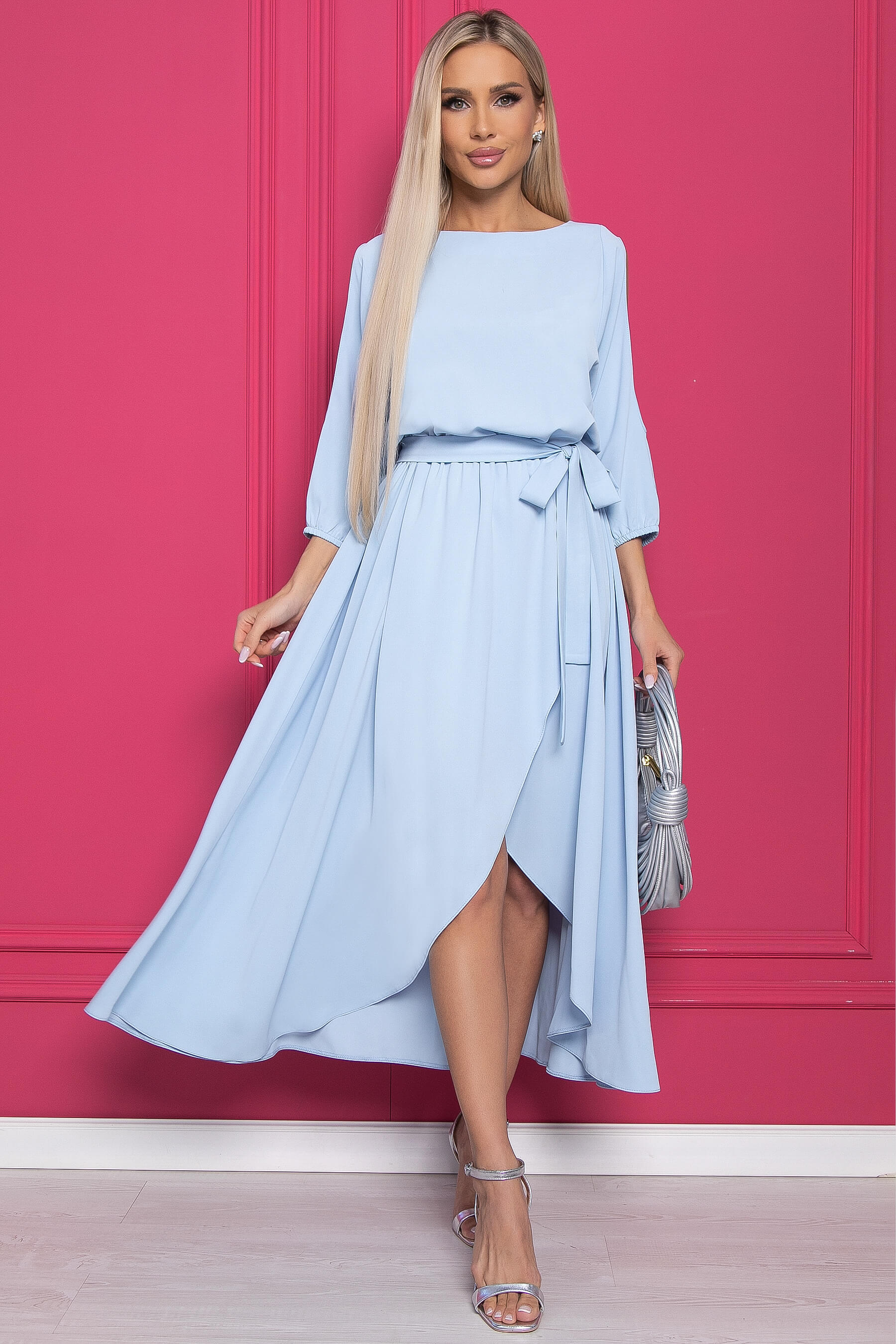 Шикарное макси-платье свободного силуэта с акцентными рукавами. Платье свободного силуэта, талия собрана на резинку и отделяет верх от юбки, скроенной на запах. Рукав втачной, три четверти с овальным вырезом. Горловина - лодочка. В комплекте пояс из основной ткани.