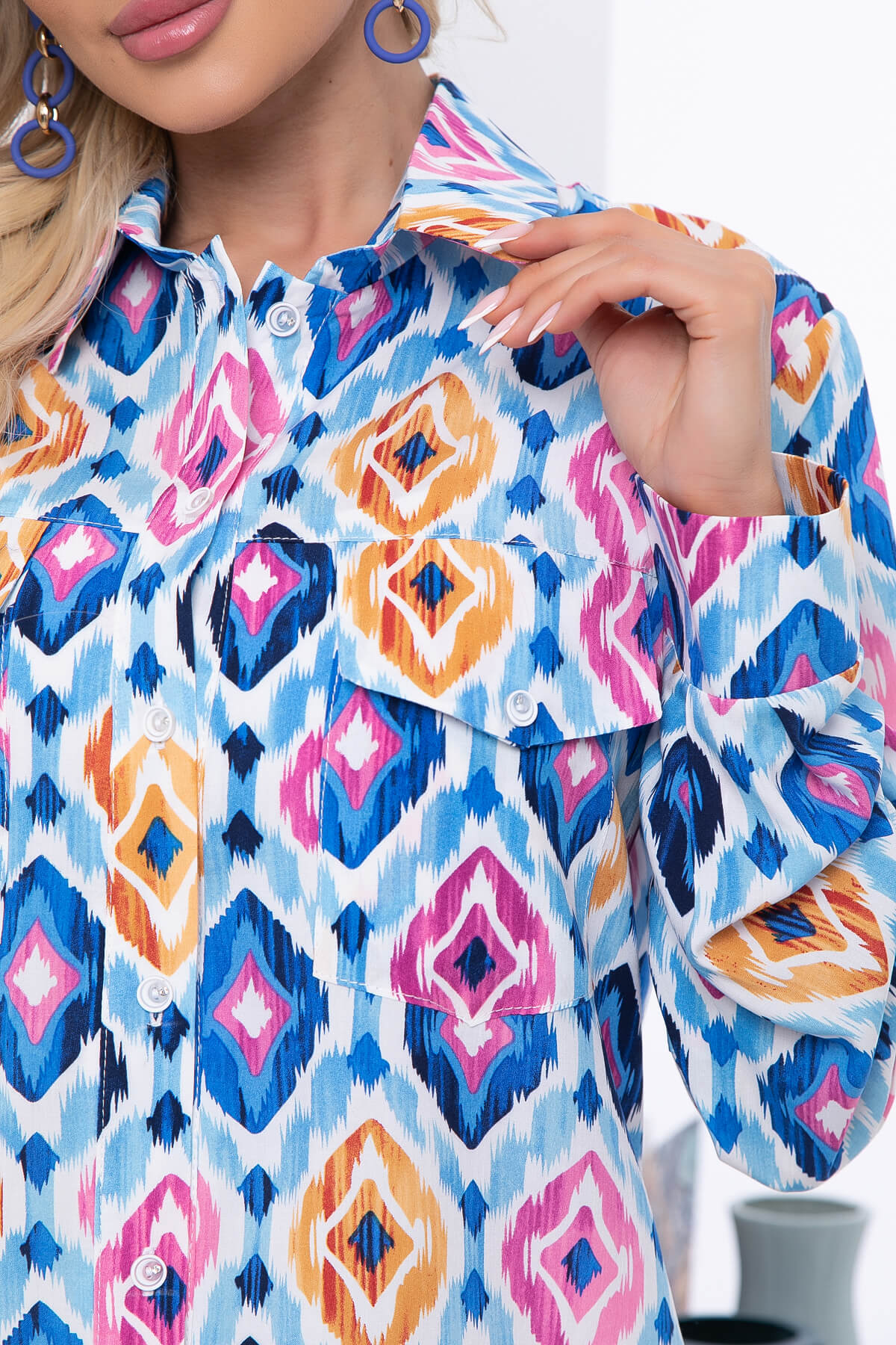 Рубашка в стильном оттенке придаст яркости и эффектности вашему образу. Свободный крой рубашки обеспечивает максимально свободную посадку по фигуре. С такой моделью можно создать и официально-деловой образ, и расслабленный. Рубашка имеет длинный втачной рукав.