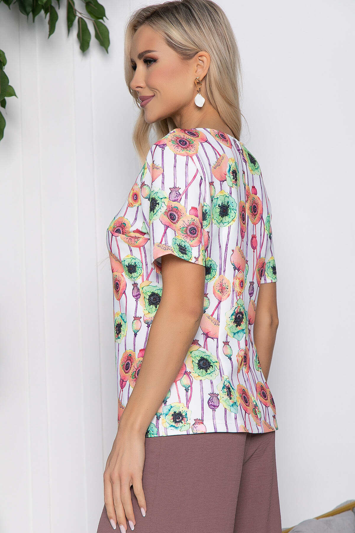Яркая блузка прилегающего кроя с насыщенным флористическим принтом. Прекрасно подойдет под однотонные джинсы, брюки или шорты. Дополните образ летней обувью и вы готовы к отличному дню!