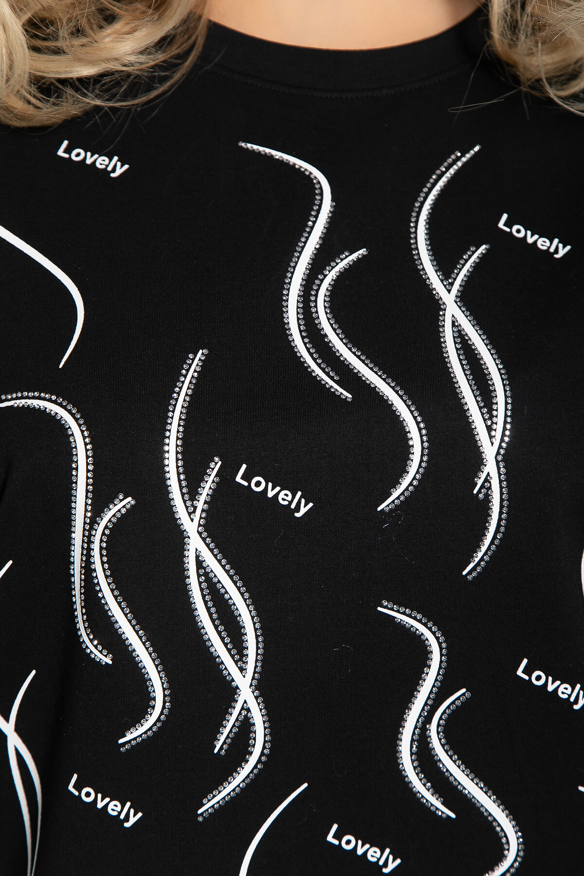 Оверсайз крой этой футболки создаёт ощущение комфорта и лёгкости, позволяя чувствовать себя уверенно в течение всего дня. Футболка украшена оригинальным принтом и дополнена стразами, что делает её поистине неповторимой.