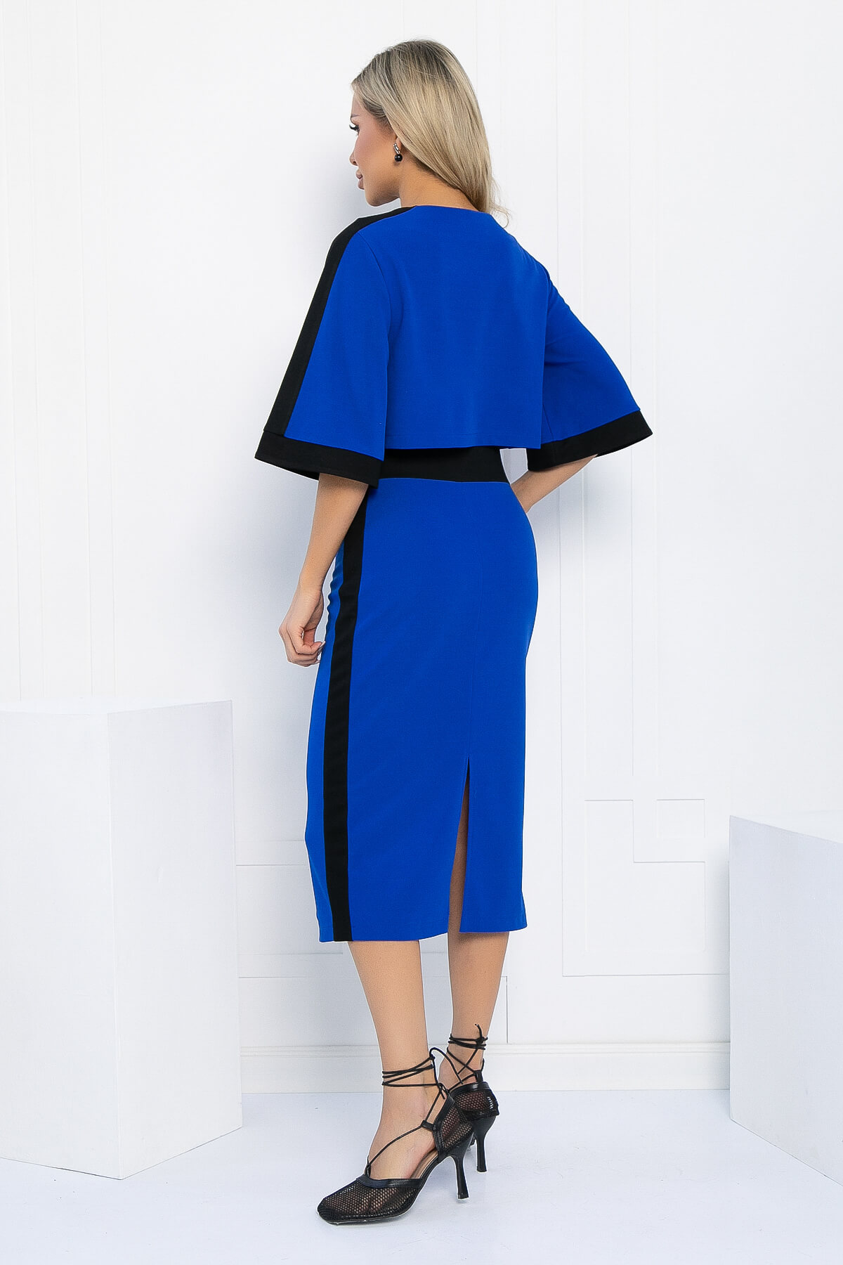 Стильный комплект, состоящий из укороченного кроп-топа и сарафана, станет ярким акцентом в вашем гардеробе! Сарафан с отрезной талией идеально подчеркивает фигуру, а его округлая горловина и отсутствие застёжки обеспечивают комфорт и лёгкость. Разрез сзади внизу добавляет удобства в движении. Вставка из контрастного материала на талии придаёт комплекту уникальность, а боковые лампасы из контрастной ткани визуально стройнят фигуру. Укороченный кроп-топ, который заканчивается на линии талии, прекрасно сочетается с сарафаном. Две грудные вытачки обеспечивают хорошую посадку и комфорт. Втачной рукав с контрастной манжетой внизу создаёт интересный визуальный эффект. Лампасы из контрастной ткани идут от горловины и вдоль всего рукава, делая топ более выразительным.