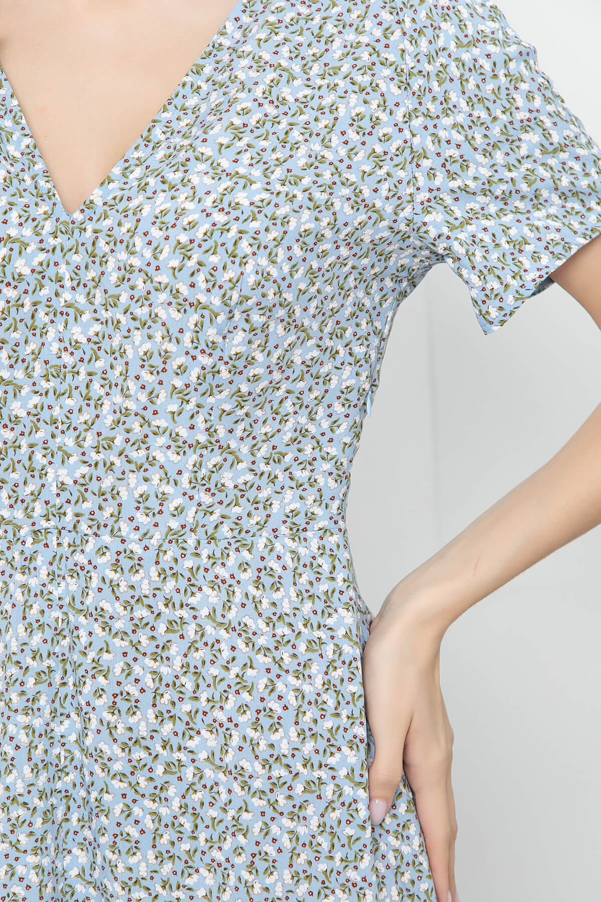 Элегантное платье, которое прекрасно подойдет для прогулки или свидания! Хорошо сочетается с каблучком и с обувью на низком ходу. Хит сезона - платье длины миди из натуральной ткани, с очень популярным сейчас цветочным принтом. Мягкий V-образный вырез красиво подчёркивает шею, тонкий поясок - подчеркнет талию. Небольшой разрез по переду выразительно подчеркнет и удлинит Ваши ножки! В боковом шве потайная молния.