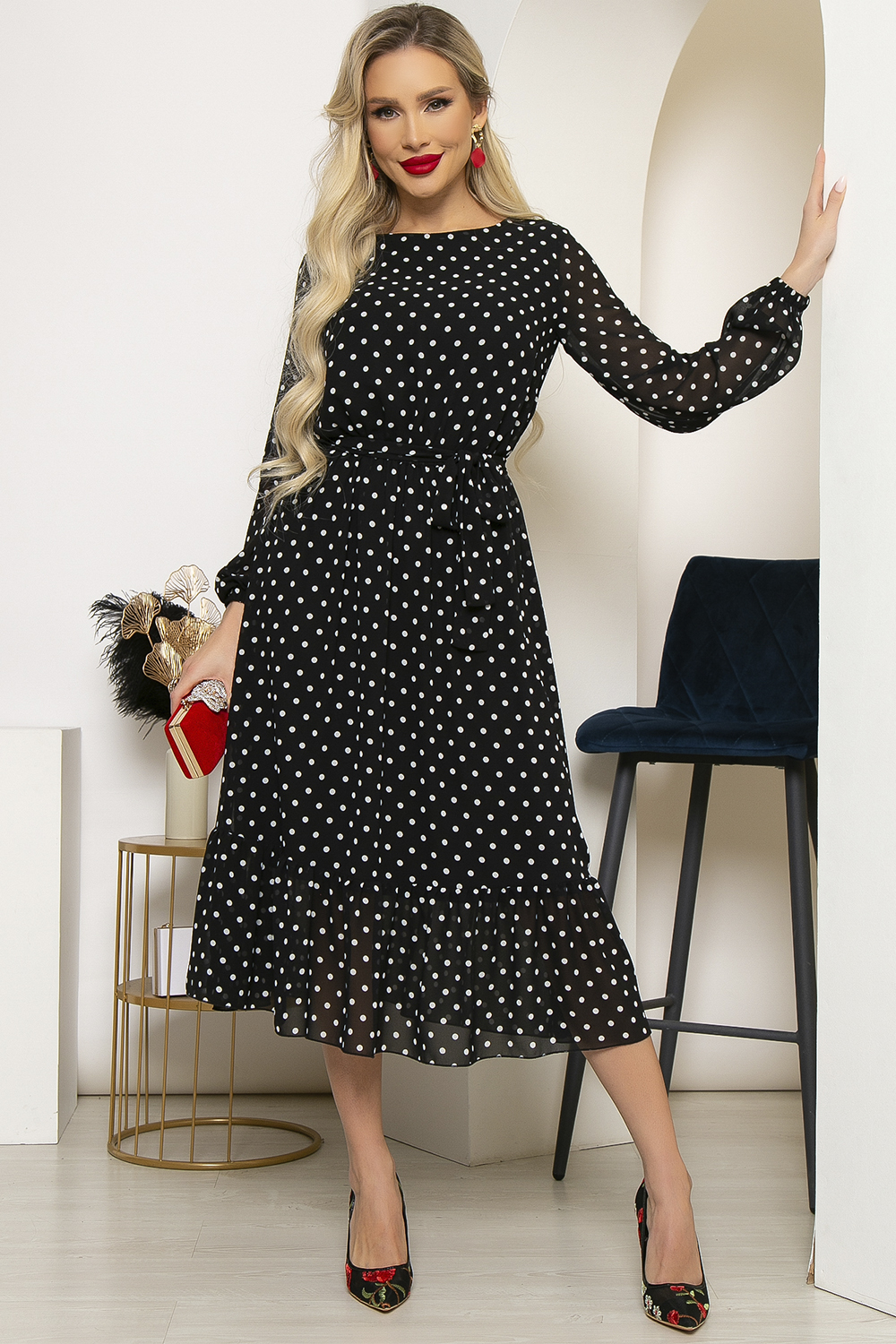 Шифоновое летящее платье идеально подчёркивающее вашу женственность. Платье свободного силуэта на подкладке. Талия на комфортной резинке. Рукав длинный, втачной. Пояс из основной ткани входит в комплект.