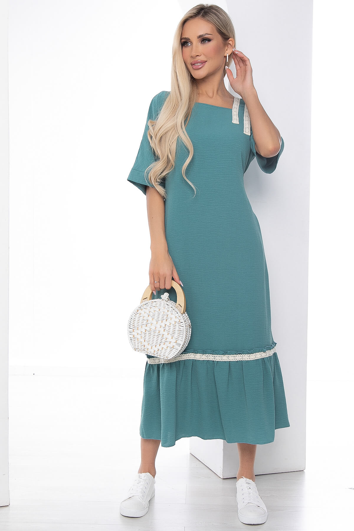 Легкое и воздушное платье с воланом снизу и открытым плечом добавит вашему повседневному или вечернему выходу эффектности.