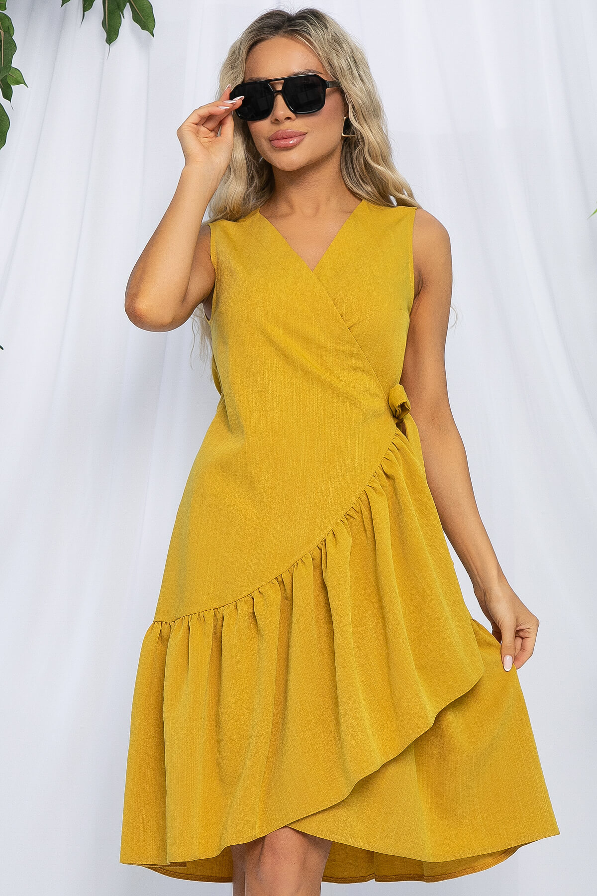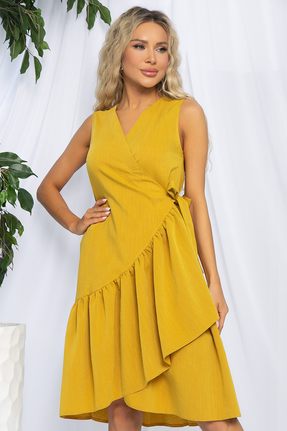 Почувствуйте летнее настроение с нашим платьем на запах! Это превосходный вариант для жарких дней, когда хочется выглядеть модно и чувствовать себя комфортно. Изысканный фасон выгодно подчёркивает фигуру, а кокетливые рюши придают платью воздушность и очарование. Носите его с любимыми босоножками или кедами для создания непринуждённого образа или дополните его туфлями на каблуке для более праздничного образа.