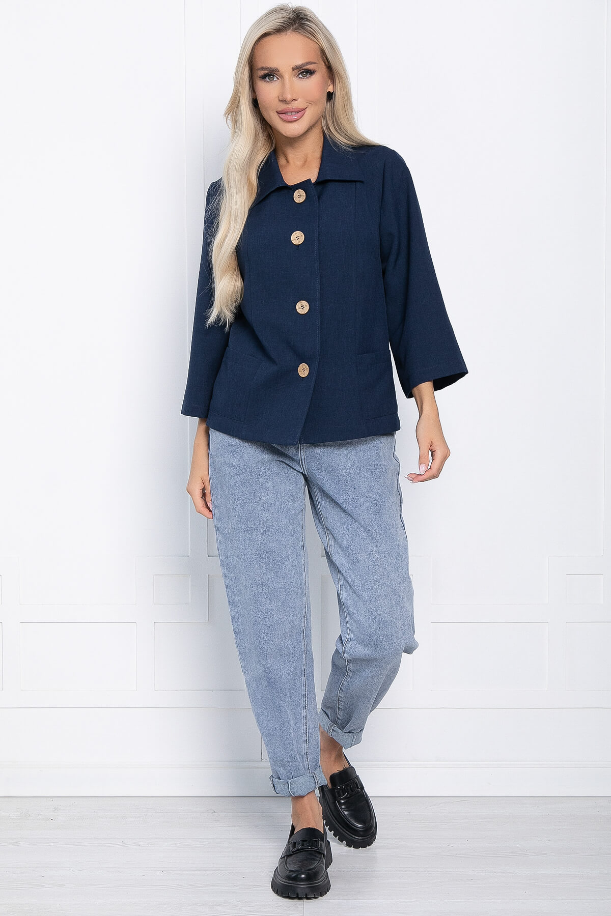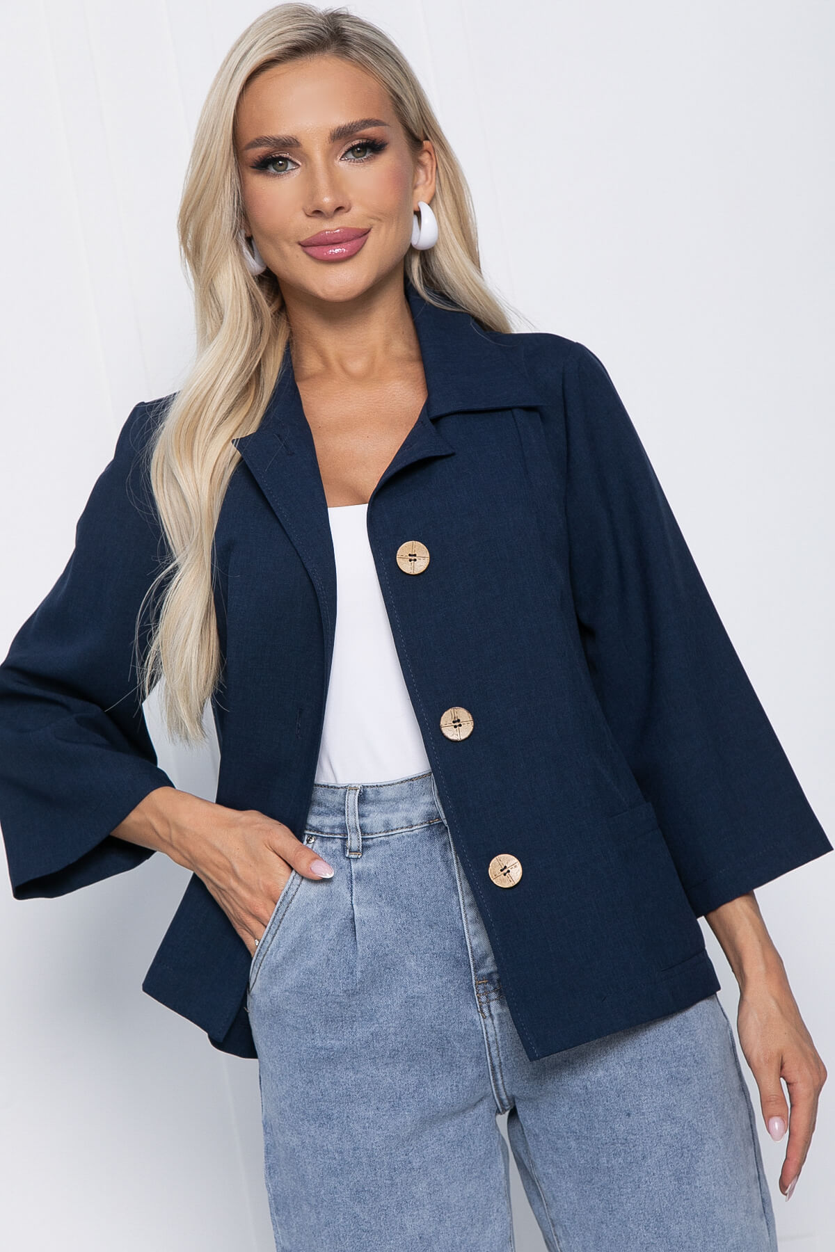 Жакет полуприлегающего силуэта легко впишется в офисный и деловой стиль, а также на прогулке по городу! Изделие прекрасно смотрится на любой фигуре, скроет все недостатки. Сочетается как с юбками, так и с брюками. Спереди расположены накладные карманы, рукава расширенные.